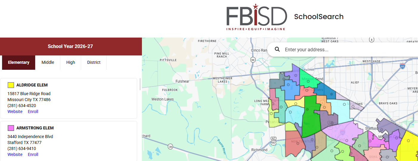 - Not sure which elementary school campus is closest? Check the My School Map to locate your home-zoned elementary school. Review the FBISD Pre-K list of Schools to confirm your Pre-K campus.