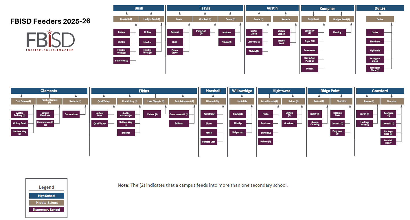 FBISD feeder patterns determine the path that students follow as they graduate from one level to the next.