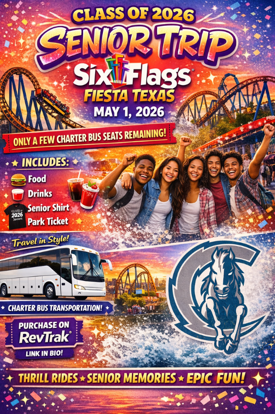• The Senior Class of 2026 will depart for their Senior Trip on May 1st! Please ensure you have turned in a completed permission slip to Ms. Williams in B116 no later than April 15th.