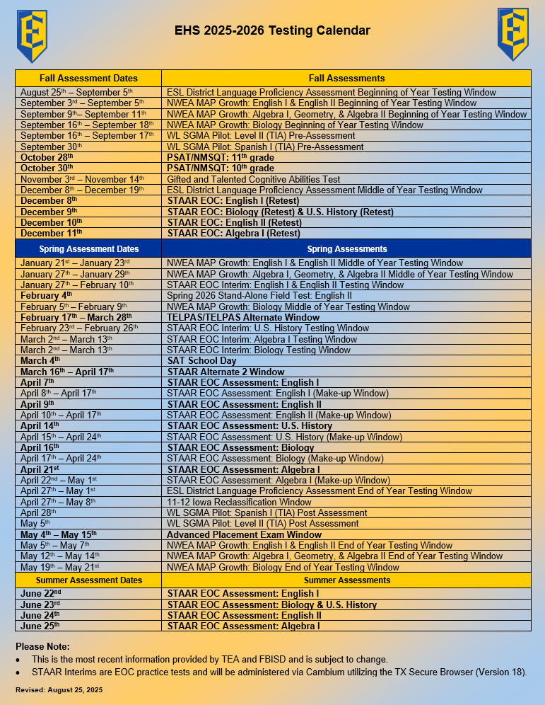 • 2025-2026 Assessment Schedule